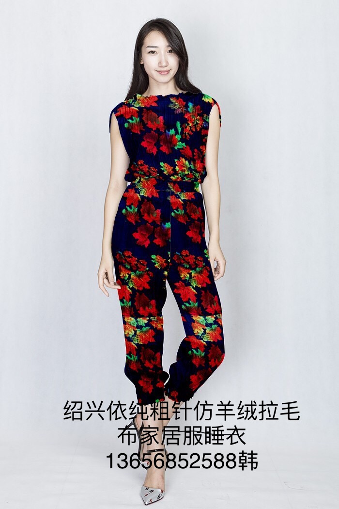 法蘭絨拉毛拉架印花仿羊絨居家服面料