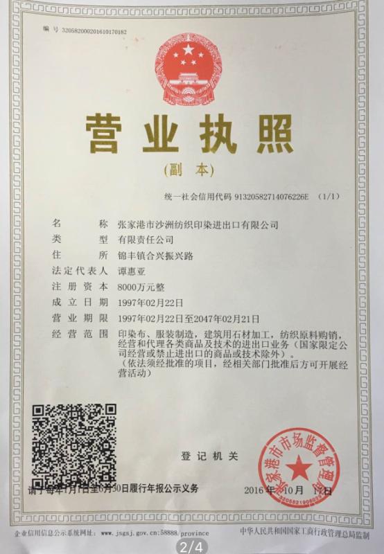 張家港市沙洲印染進(jìn)出口有限公司